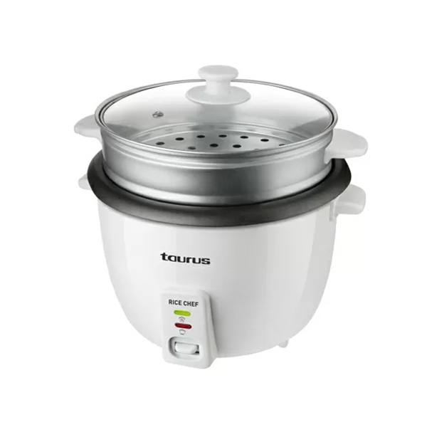 Ferva o arroz ou cozinhe no vapor qualquer tipo de alimento (inclui acessório para cozinhar a vapor). Prove arroz perfeitamente cozido rapidamente e desfrute de uma culinária saudável com seu super cozimento a vapor. Vamos preparar uma paella? Consiga de 6 a 7 porções com Rice Chef.